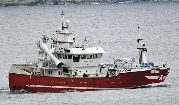 🥈 Atløy Viking fra Askvoll Fangstrate på 79.7 t/døgn Landet totalt 2451 tonn i perioden Catchwise · Foto: Atløy Viking tatt av , Skipslistene